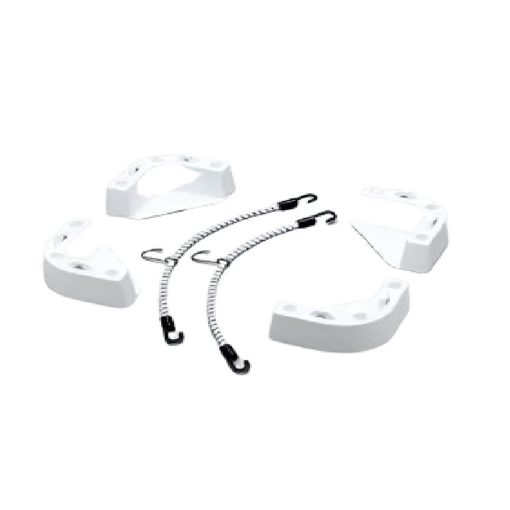 Para instalar o Suporte para Caixa Térmica, fixe as 4 peças de encaixe na embarcação utilizando parafusos adequados (não incluídos). Posicione a caixa térmica sobre os suportes e utilize as cintas de travamento para garantir que o cooler fique preso, evitando quedas e sujeira. A instalação é rápida e prática, permitindo que você remova e coloque a caixa térmica com facilidade sempre que necessário.
