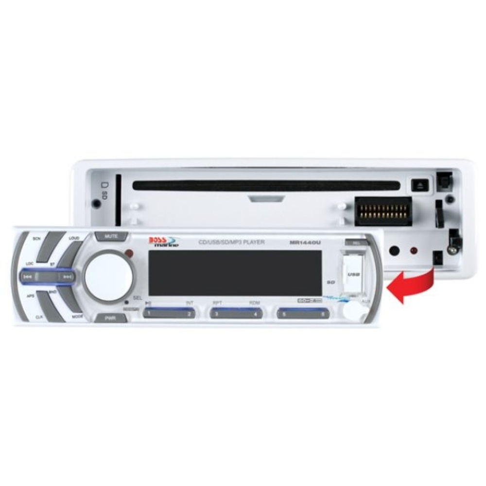 O CD/MP3 Player Marinizado Boss Marine - MR1440U é a solução ideal para amantes da música que desejam alta performance em ambientes marítimos. Este dispositivo robusto e elegante possui painel frontal revestido contra raios UV e relógio digital de quartzo. A montagem em trilho DIN simples permite instalação facilitada e sua frente removível oferece praticidade e segurança. Com rádio AM/FM que tem pré-ajuste para 30 estações, entrada USB e AUX frontal, além de suporte para cartões SD, este player atende a todas as suas necessidades de reprodução de áudio, incluindo CD, MP3, CDR, e CDRW. O CD/MP3 Player Marinizado Boss Marine - MR1440U também é compatível com a saída de áudio de iPod e outros MP3 players, além de vir equipado com controle de bass e treble, balanço de faders e função mute para completa personalização de som. Um controle remoto sem fio completa o pacote para uma experiência de entretenimento incomparável.