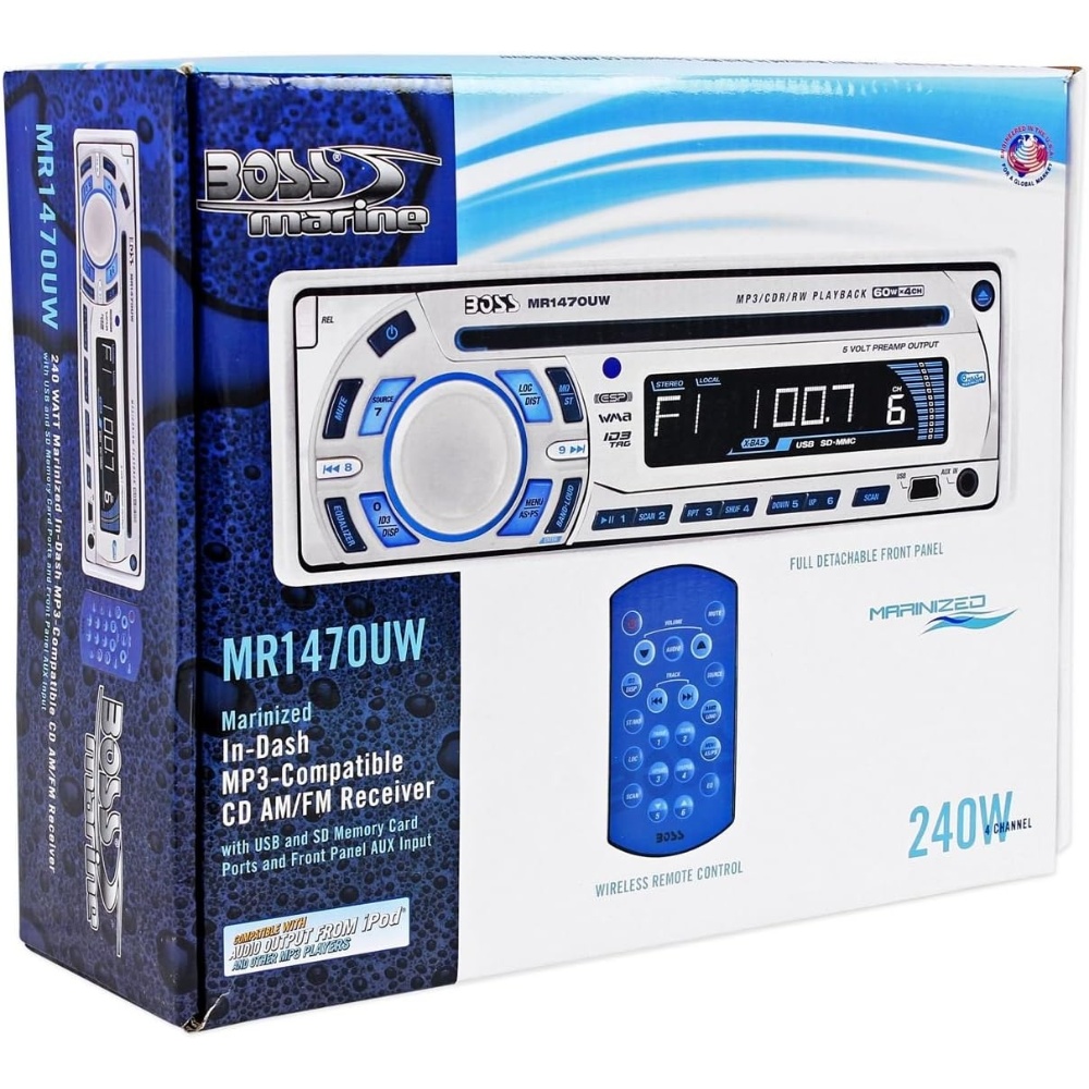 Com o CD/MP3 Player Marinizado Boss Marine - MR1470UW, você está pronto para transformar sua experiência náutica. Seja navegando tranquilamente ou em aventuras pelo mar, o robusto e versátil dispositivo oferece qualidade de som e resistência inigualáveis. Garanta já o seu e aproveite o melhor do entretenimento a bordo!