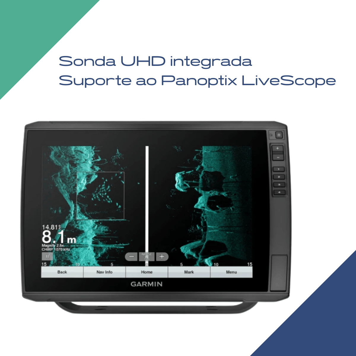 SUPORTE DE SONDA LIVESCOPE? O ECHOMAP Ultra 122sv suporta uma variedade de transdutores Garmin, incluindo os Panoptix? transdutores de sondas que veem tudo e o sistema de sonda de monitorização Panoptix LiveScope? LVS12 (vendido em separado).