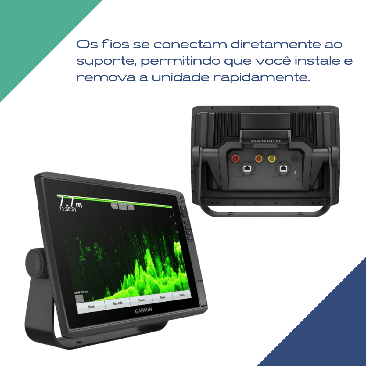 LEVE-O CONSIGO Guarde o seu ECHOMAP Ultra de forma segura. Os fios são diretamente ligados ao suporte basculante de libertação rápida, o que lhe permite instalar e remover rapidamente a sua unidade.