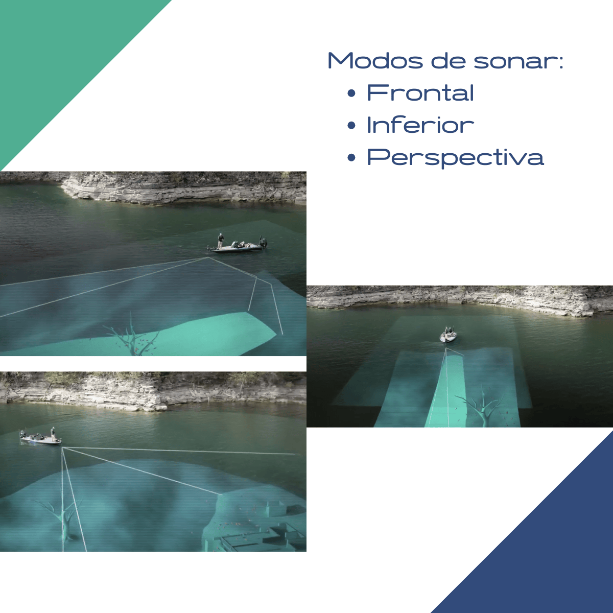 Sonar LiveScope O sonar de varredura ao vivo, fácil de interpretar, permite que você veja debaixo d'água com imagens impressionantes em tempo real. Com estabilização de imagem, cores vibrantes, visualização personalizável e 3 modos direcionais, você pode encontrar peixes onde quer que estejam. Ajuste o transdutor de acordo com sua forma de pesca: aponte para frente para ver ao redor do barco, aponte para baixo para ver diretamente abaixo ou ajuste para obter a visualização em perspectiva, um ângulo superior para águas rasas.