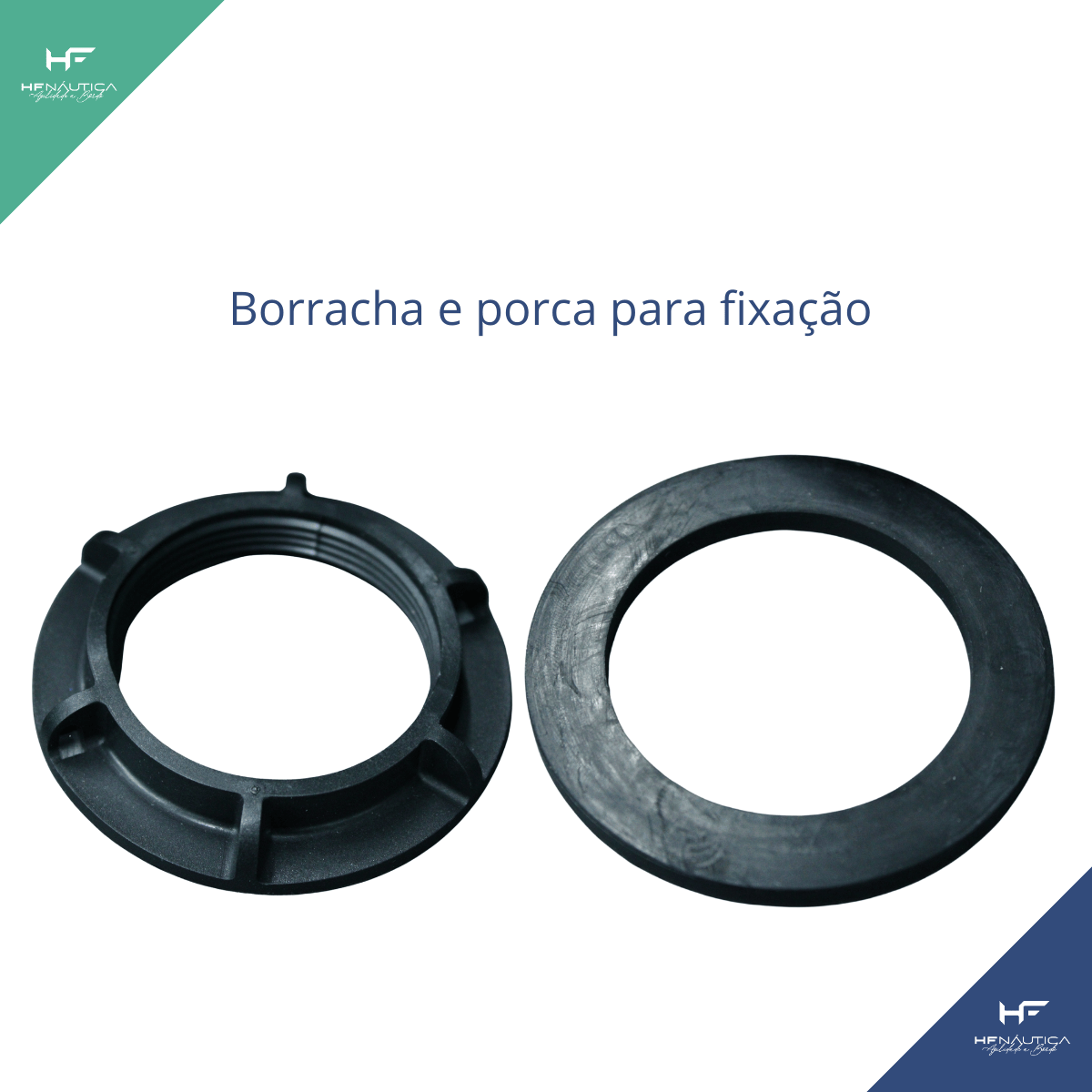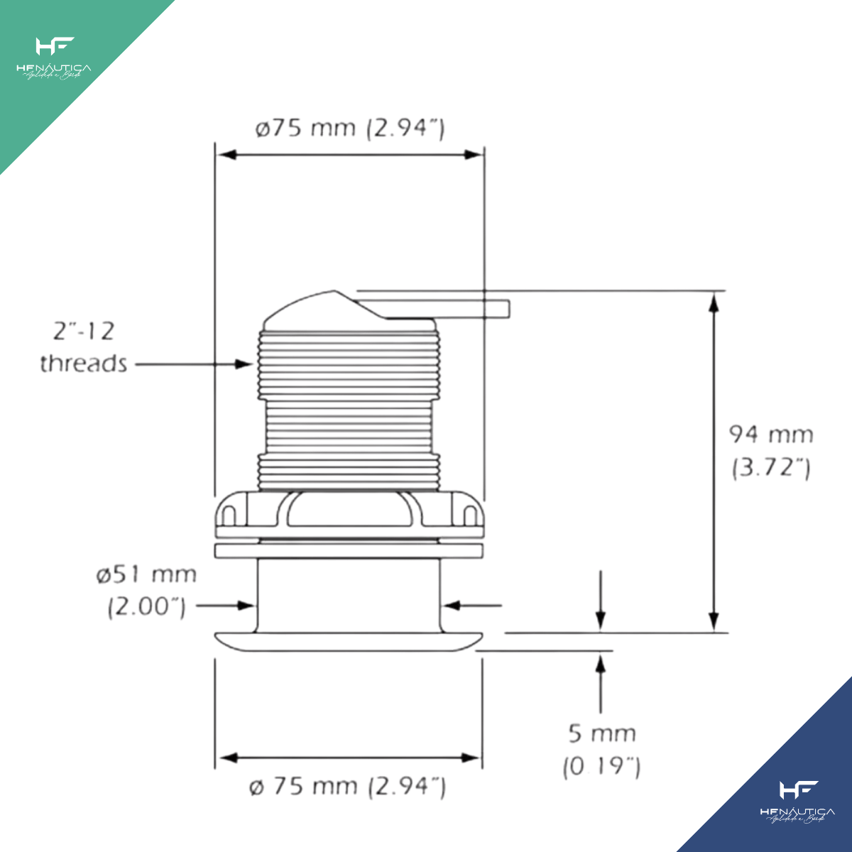 Transducer thru hull é para os casos de montagem passante pelo fundo do casco. Feito de plástico, tem bom desempenho em altas velocidades e é uma excelente escolha para cascos de fibra de vidro e metal, especialmente em barcos com motorização de centro, com pé de galinha e claro nos veleiros.