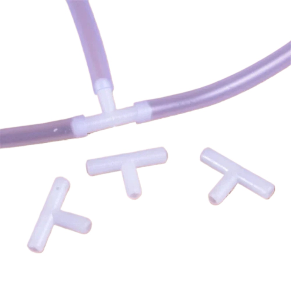 2. Insira ambas as extremidades cortadas da mangueira nas extremidades paralelas da conexão em T.