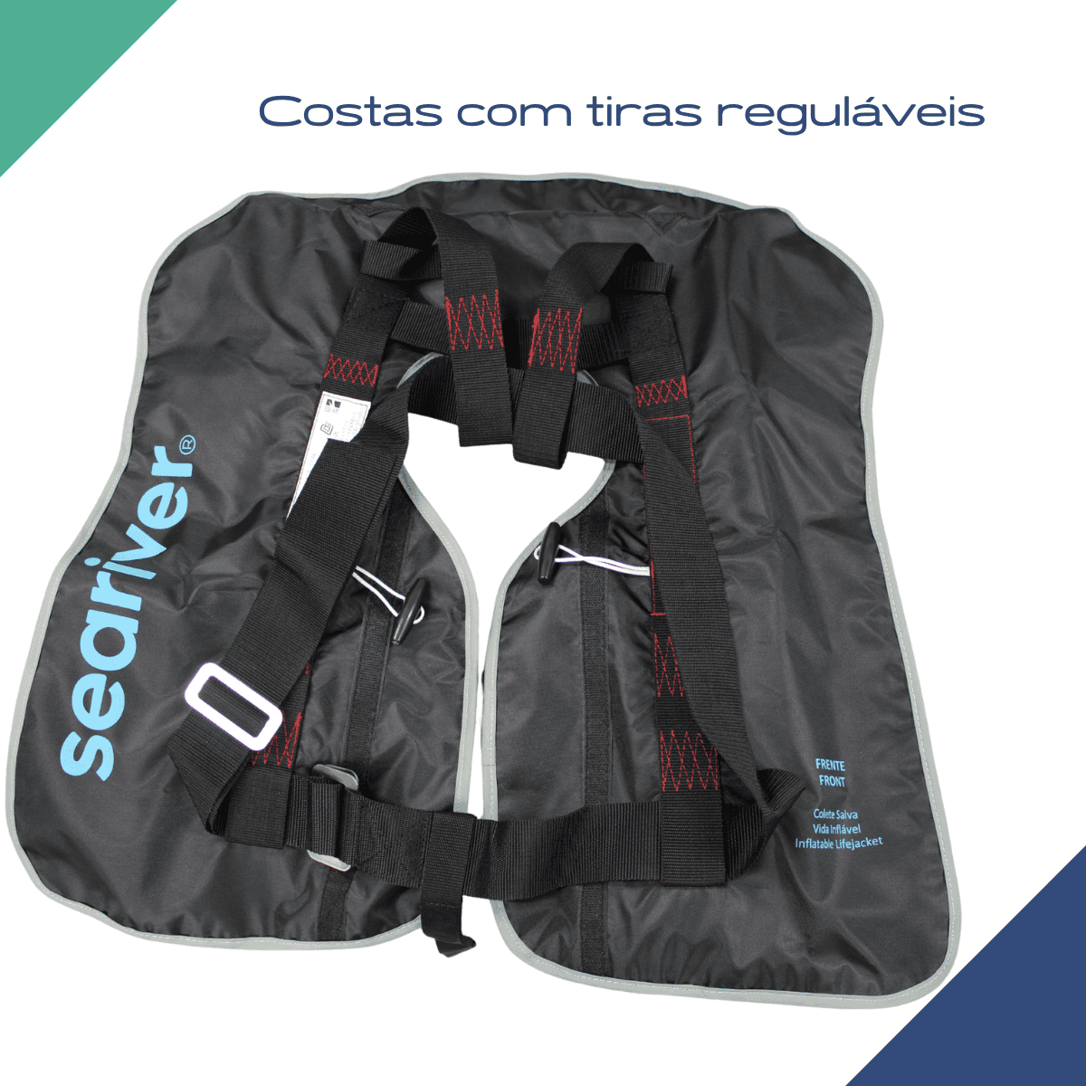 CARACTERÍSTICAS TÉCNICAS DO Colete Salva-Vidas Inflável Homologado Seariver Preto 150N