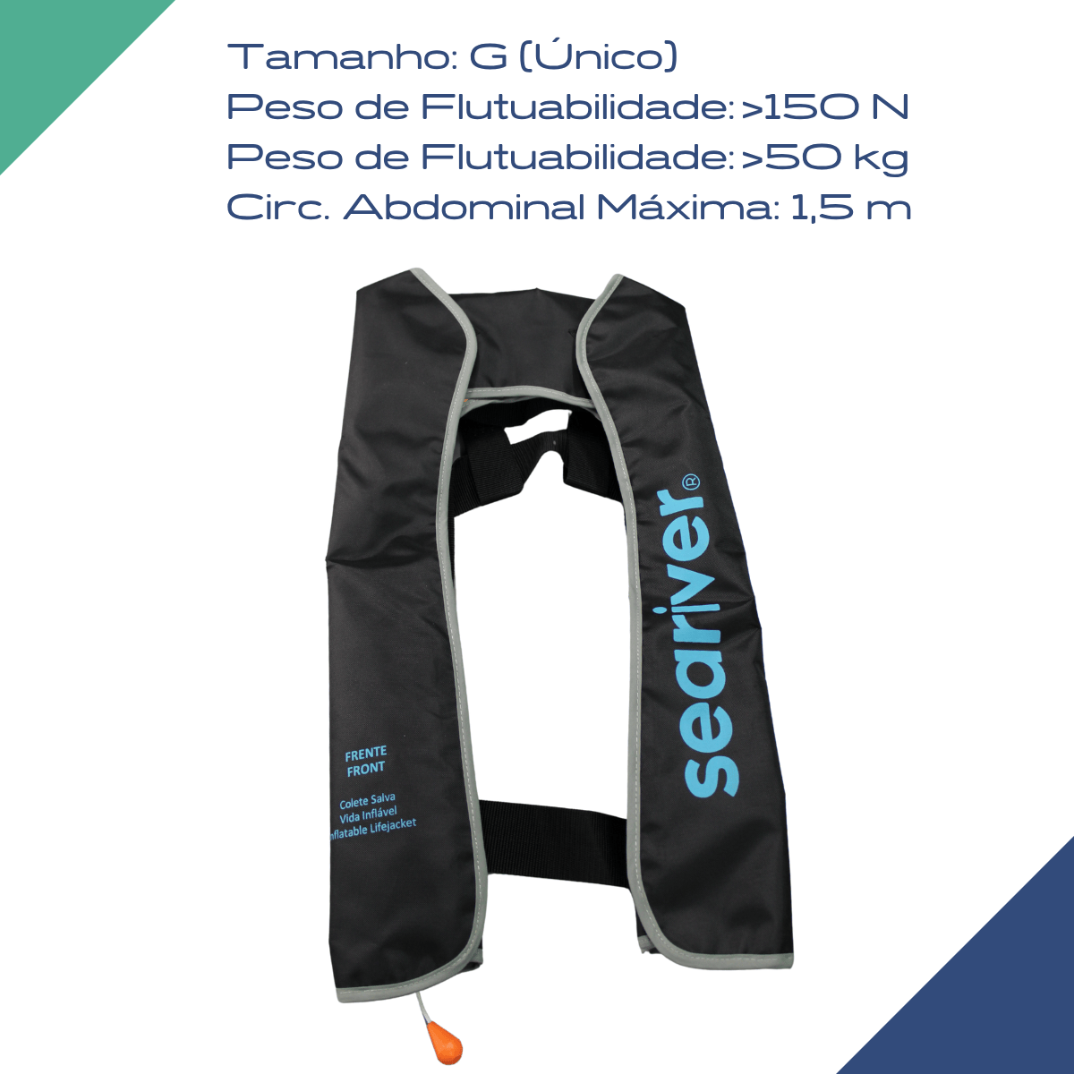 - 1 Colete Salva-Vidas Inflável Homologado Seariver Preto 150N